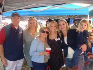 The family (from left) Wendell Weakley, Sloan Galloway, Sue Weakley, Elizabeth Weakley, Allison Weakley Sutherland and Madilyn Sutherland enjoys pre-game festivities in the Grove.